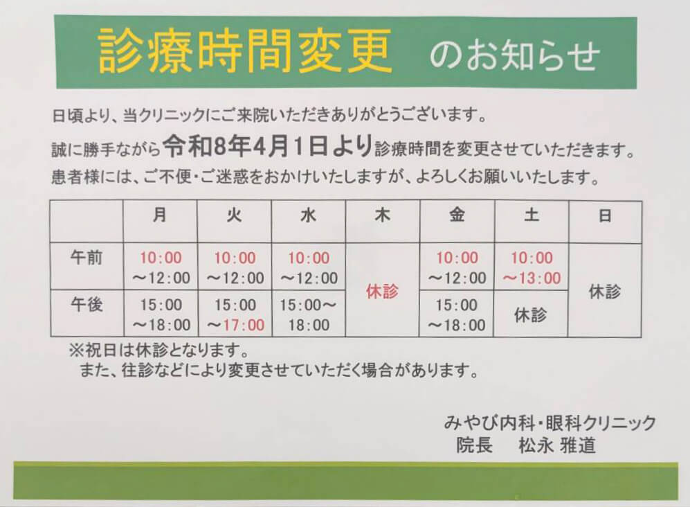 診療時間変更のお知らせ
